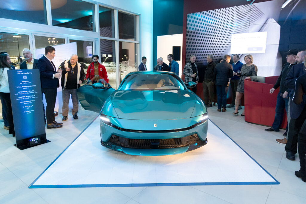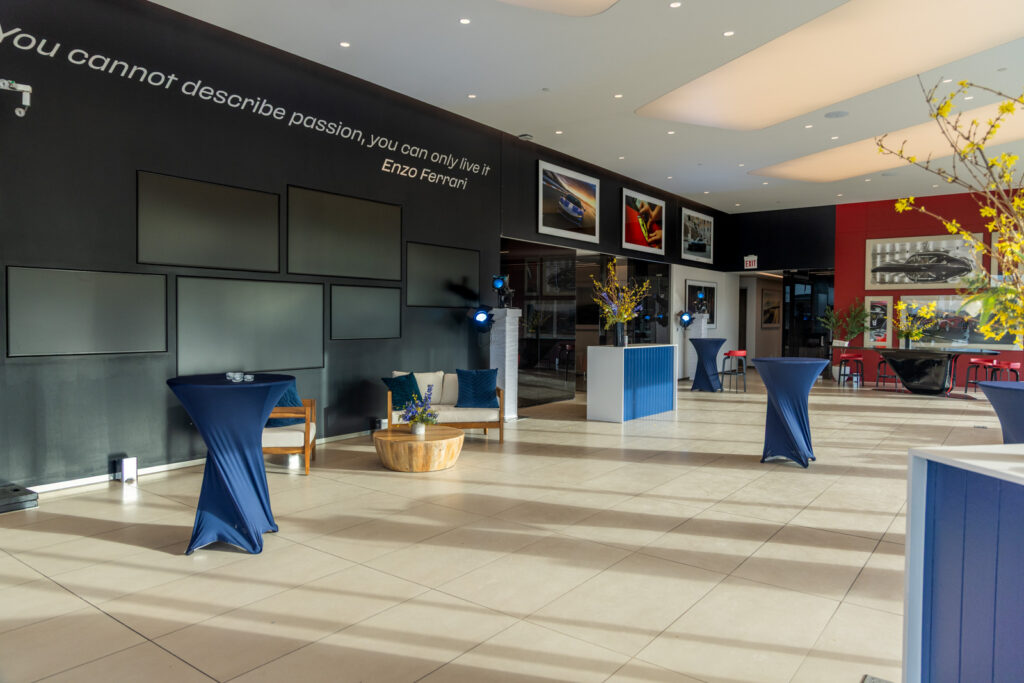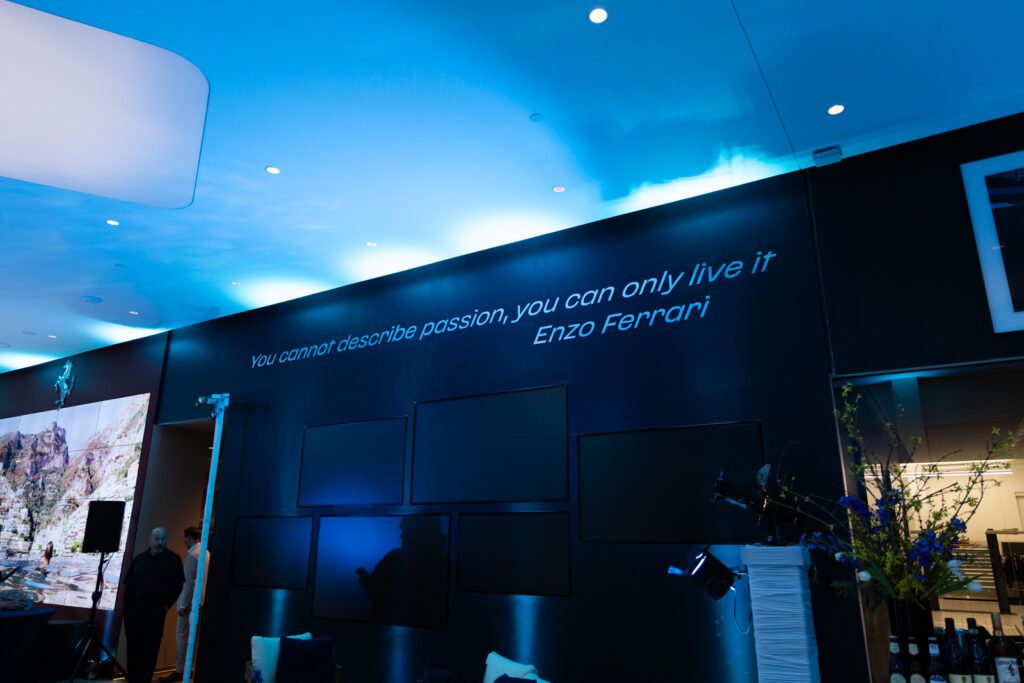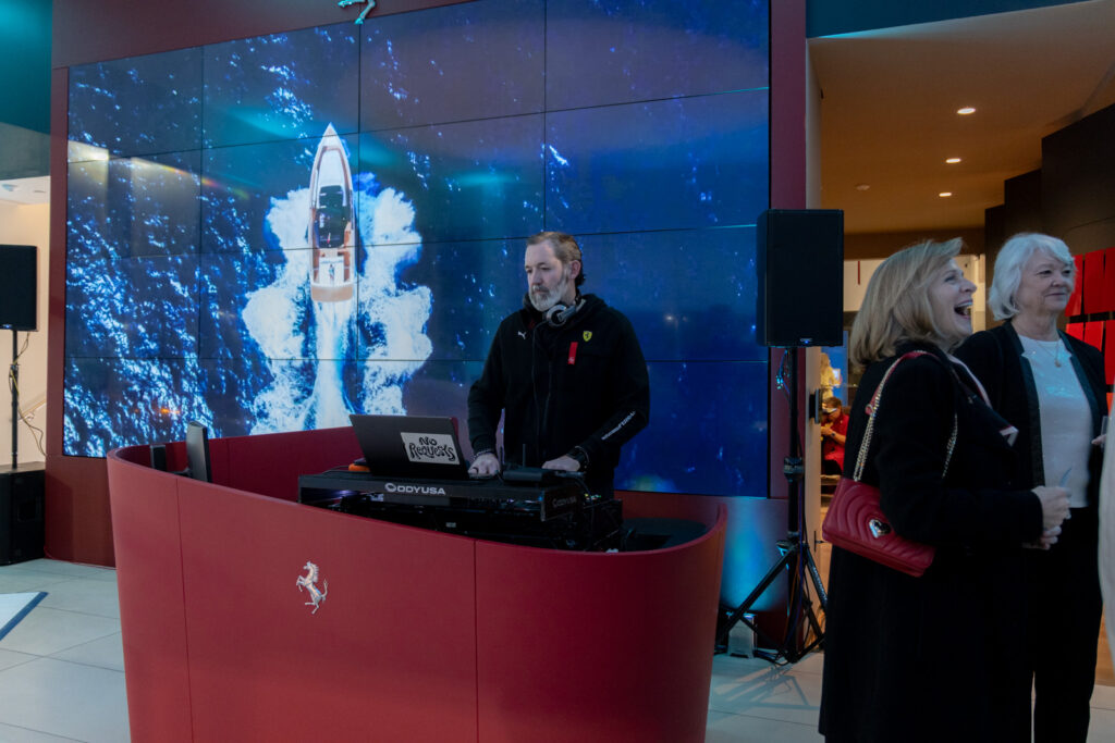 Gifting was a standout element of the evening. We partnered with Daily Disco, a local embroidery shop, to customize blankets featuring our store’s logo. Clients personalized the reverse side with names, car models, or pet names, creating a meaningful and memorable takeaway. A DJ set the tone with an elevated ambiance, and by the end of the night, guests shared nothing but enthusiastic compliments about both the Ferrari Amalfi and the overall event experience.