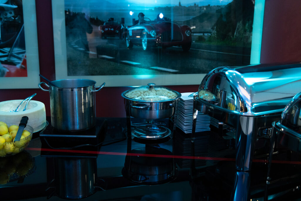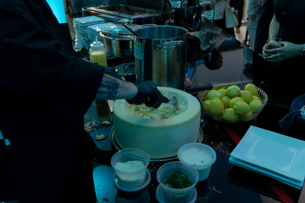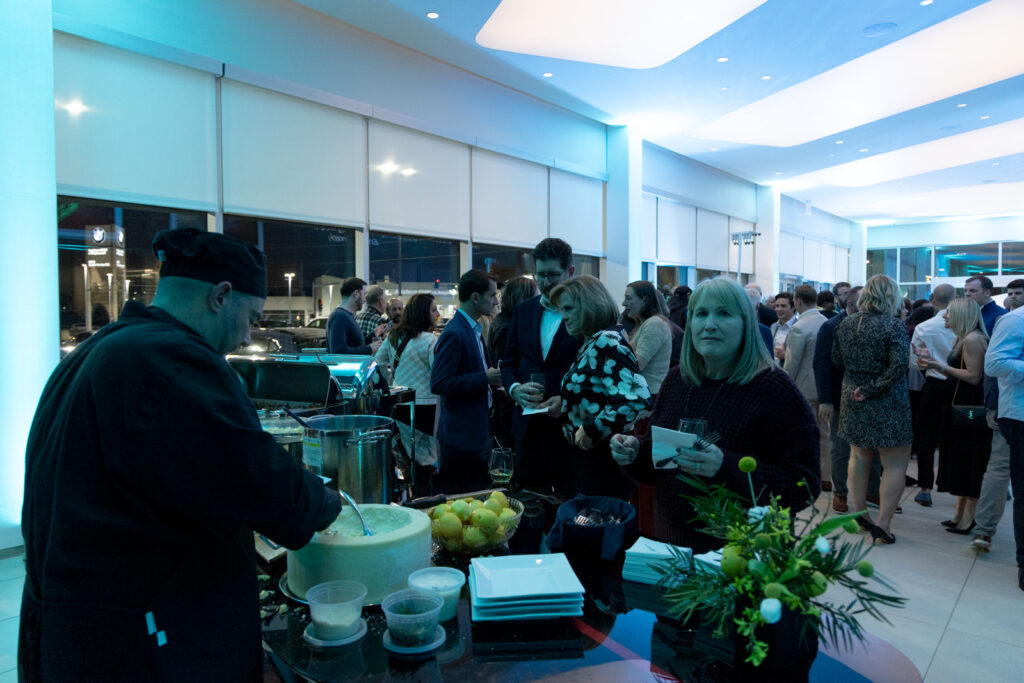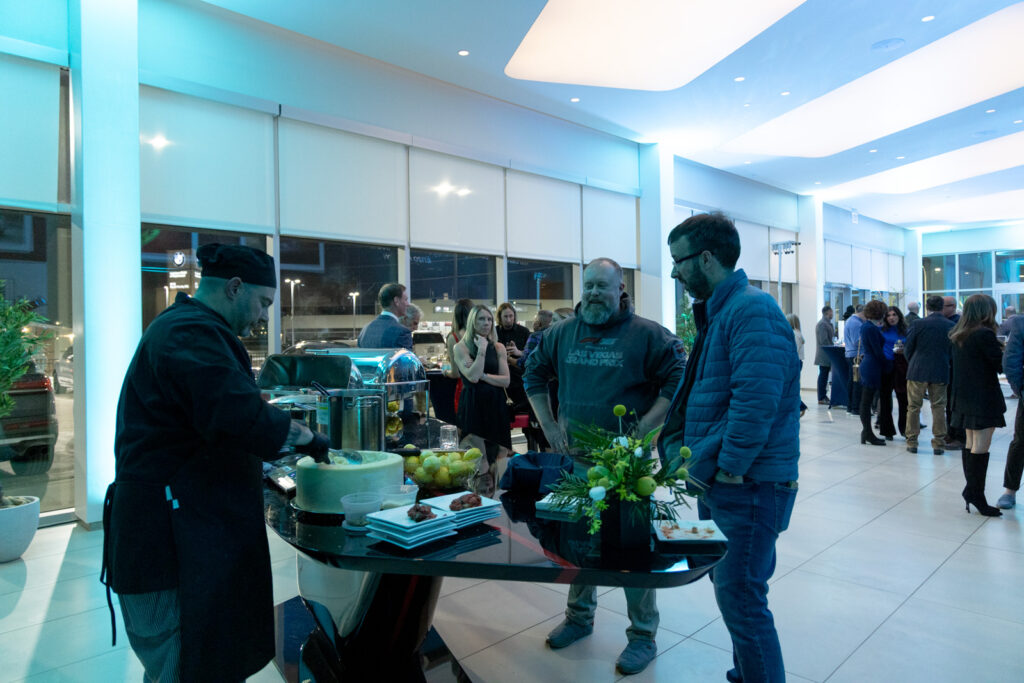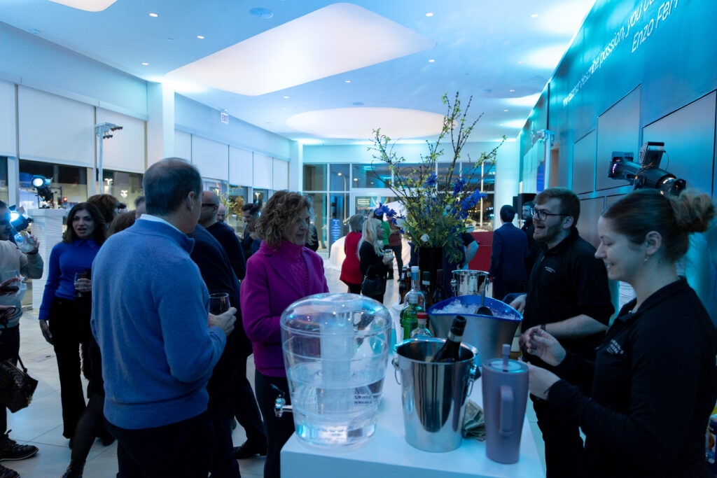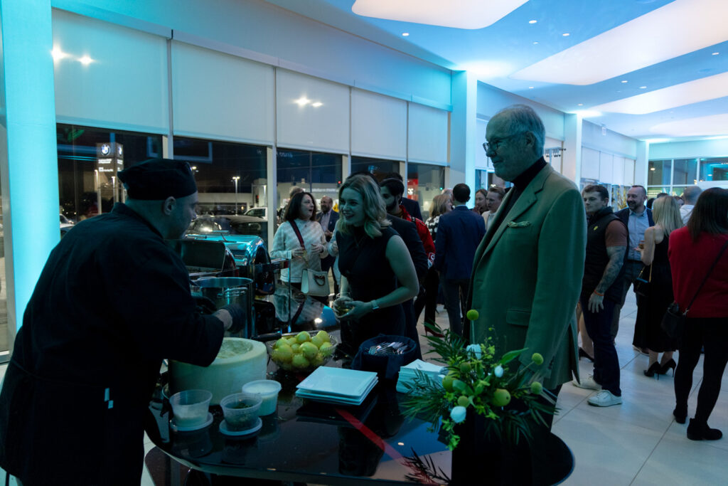 The event offered the perfect amount of time for guests to mingle, enjoy food and beverage from Anthonino’s Tavern. Culinary highlights included passed hors d’oeuvres and the always-popular parmesan wheel pasta station. For dessert, guests were treated to lemon sorbet served in halved lemons, creating a refined Amalfi-inspired presentation. The signature “Amalfi Spritz,” perfectly matched to the car’s color, was citrusy, refreshing, and a guest favorite.