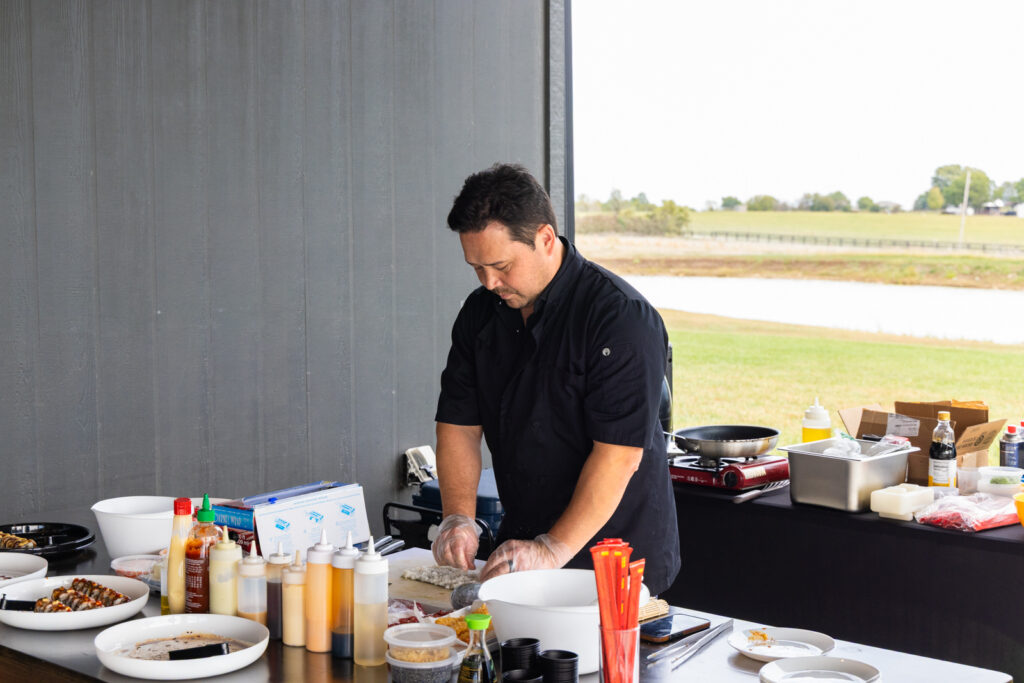 The event drew a great crowd to The Haven, a beautiful venue that offered a welcoming atmosphere and a lovely patio where guests relaxed between drives, thanks to the perfect weather. Attendees enjoyed an exceptional culinary experience with sushi chef Eric Heckman hand-rolling fresh sushi on-site, which was a major hit among guests. The lineup of vehicles available for test drives included the stunning Ferrari 12 Cilindri, the versatile Purosangue, and the elegant Roma Spider, offering participants an unforgettable driving experience.